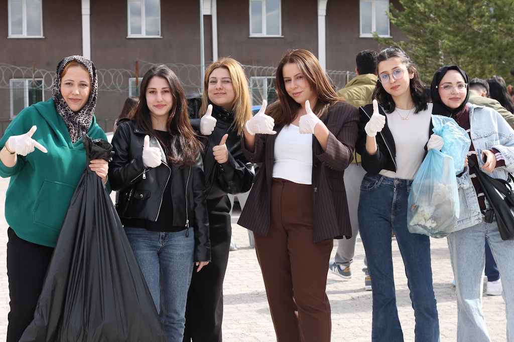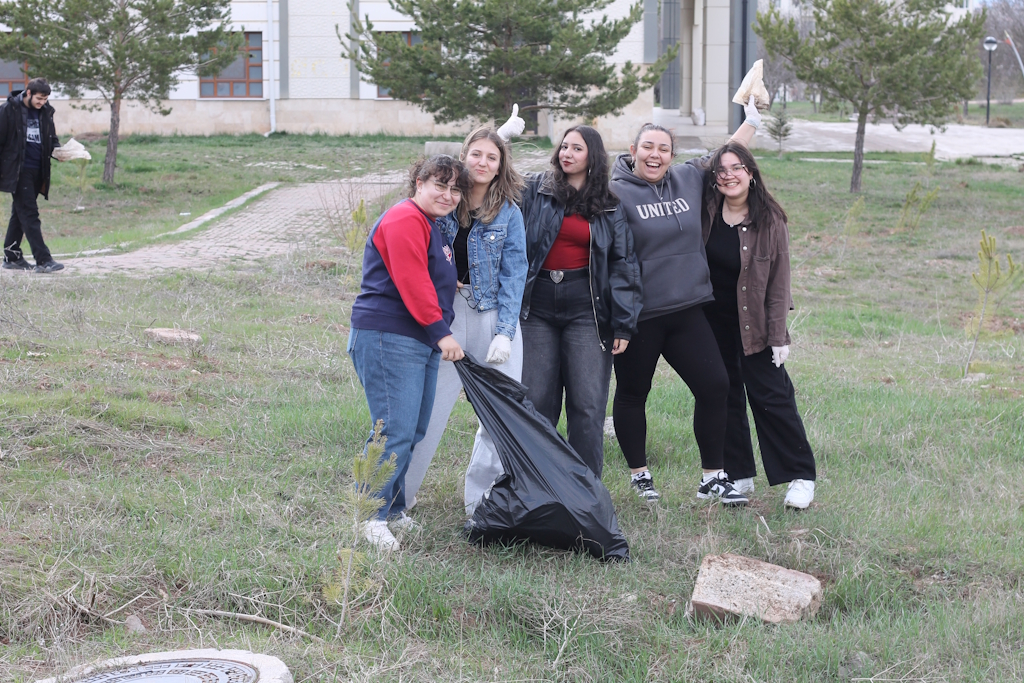 Üniversitemizde çevre bilincini artırmak ve daha yaşanabilir bir kampüs oluşturmak amacıyla anlamlı bir etkinlik gerçekleştirildi. “Temiz Kampüs, Ortak Sorumluluk!” sloganıyla düzenlenen çevre temizliği etkinliğinde Yabancı Diller Yüksekokulu öğrencilerimiz, akademik kadromuz ve idari personelimiz el ele vererek kampüs genelinde çöp topladı.